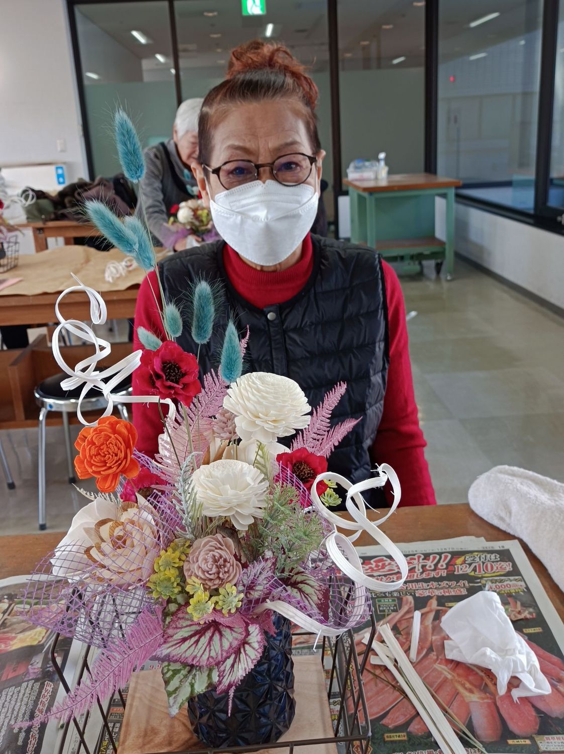 令和7年12月9日(火)知多市の勤労文化会館にて知多西支部女性部主催でアレンジフラワー教室を開催しました。