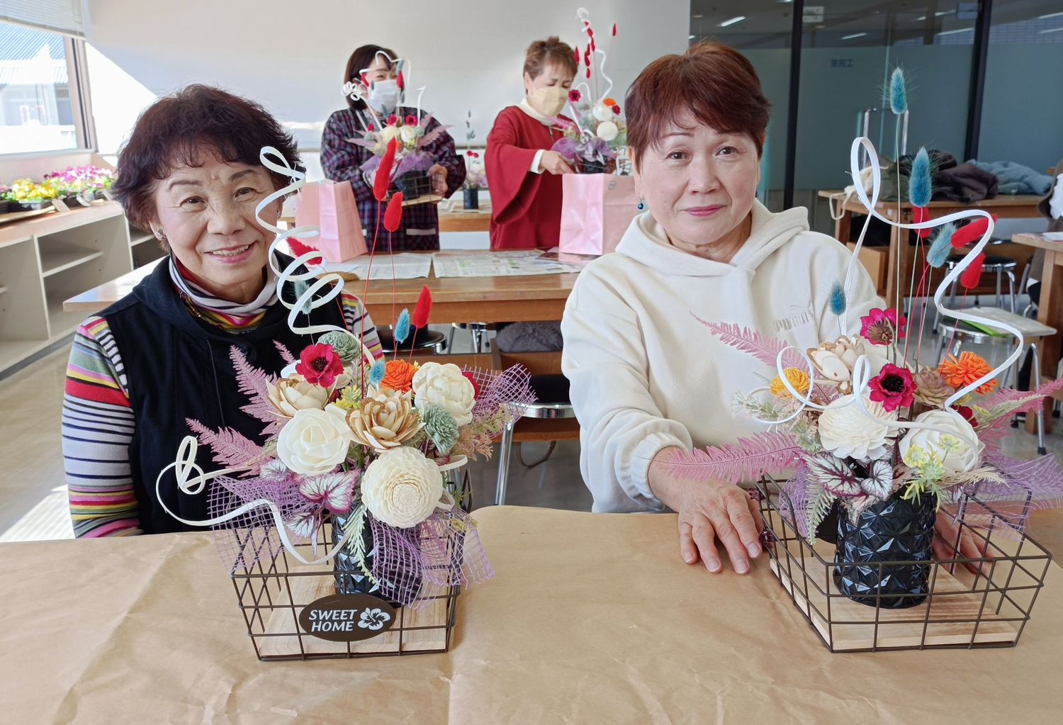 今回はソラフラワーを使ったアレンジで皆さんとても素敵に作品を完成させることができました。